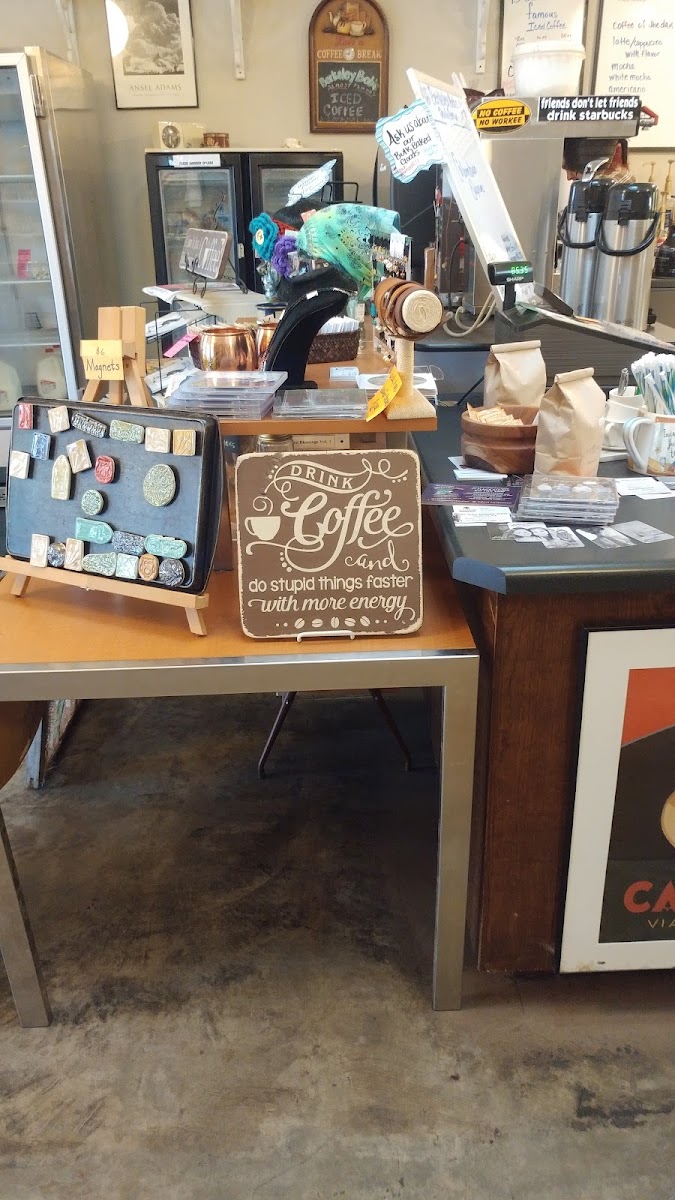 Sooo I have absolutely adored this place for years, but it's never asked me to write a review before. Wonderful locally owned business and a great centerpiece to the social scene in our town. Great quality, wonderful staff, lovely unique interior that's so homey, and the wonderful products are super reasonably priced. Would rather go here than anywhere else in town. And for any fellow vegans, the Tuscan Afternoon with oat or almond milk and no whip is to die for. Have been getting it for years. Highly recommend whether you're vegan or not. <3
